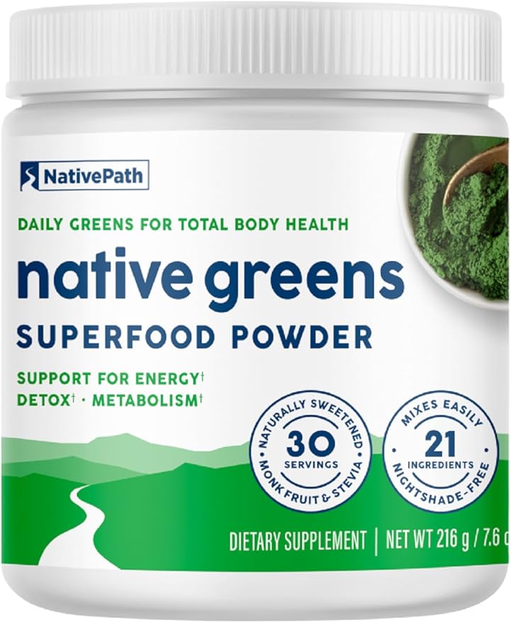 NativePath Native Greens Superfood Powder - Daily Super Greens Powder with Organic Greens and Superfoods to Support Detox, Thyroid, and Gut Health for Energy and Positive Body Changes, 30 Servings