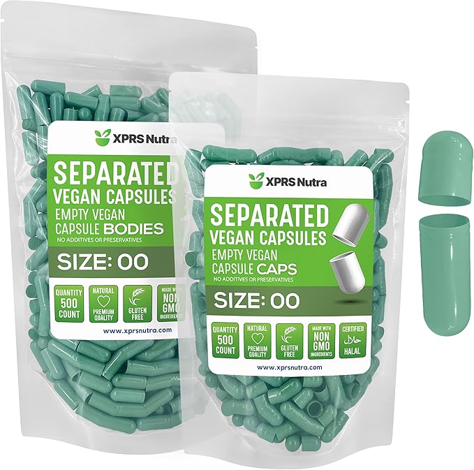 XPRS Nutra Vegan Size 00 Separated Capsules - 500 Count Premium Empty Capsules Separated in Bags - Separated Empty 00 Capsules - Pill Capsules Empty for DIY Supplement Filling (Sage Green)