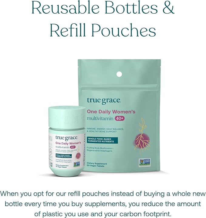 - REUSABLE, RECYCLED PACKAGING - Our commitment to planetary health is real—right down to the recycled packaging we use. Plus, every time you purchase a bottle or pouch of True Grace products, plastic is pulled out of the ocean. Our supplements are delivered in custom-made, reusable bottles made from recycled plastics; we offer refill pouches of your favorite True Grace products made of carbon-neutral packaging from sustainably sourced sugarcane.