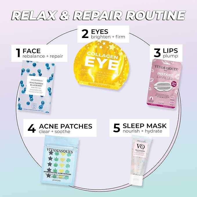 - Sheet Mask: Improve uneven skin tone and reduce blemishes with the Vitamasques Niacinamide Blueberry Face Sheet Mask. Made with premium ingredients. Includes 7 individually packaged sheet masks.