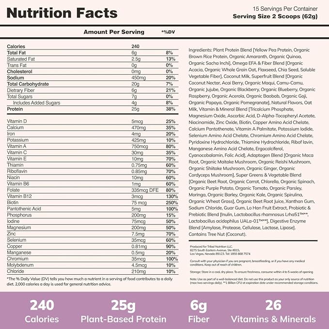- Special Ingredients : Plant Protein, Omega EFA / Fiber Blend, Adaptogens, Antioxidant / Superfood Blend, Super Greens