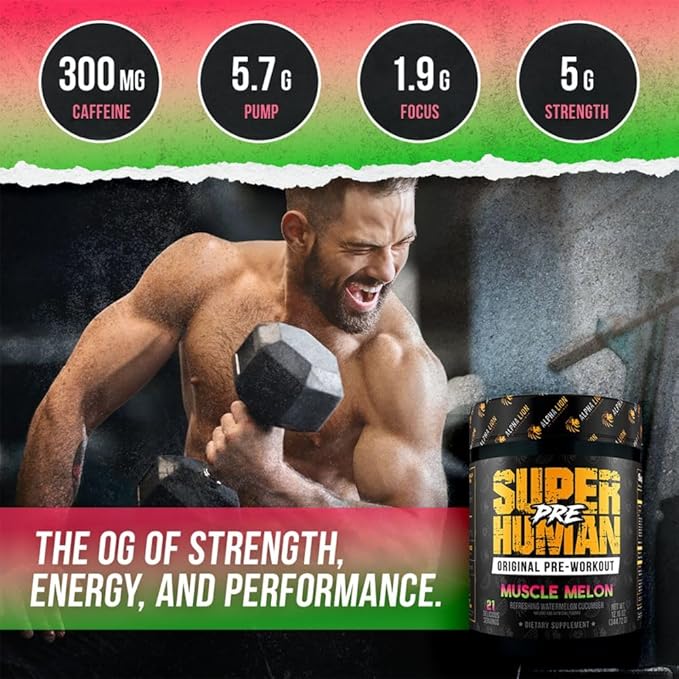 ALPHA LION Superhuman Pre Workout Powder, Beta Alanine, L-Taurine & Tri-Source Caffeine for Sustained Energy & Focus, Nitric Oxide & Citrulline for Pump (21 Servings, Muscle Melon)
