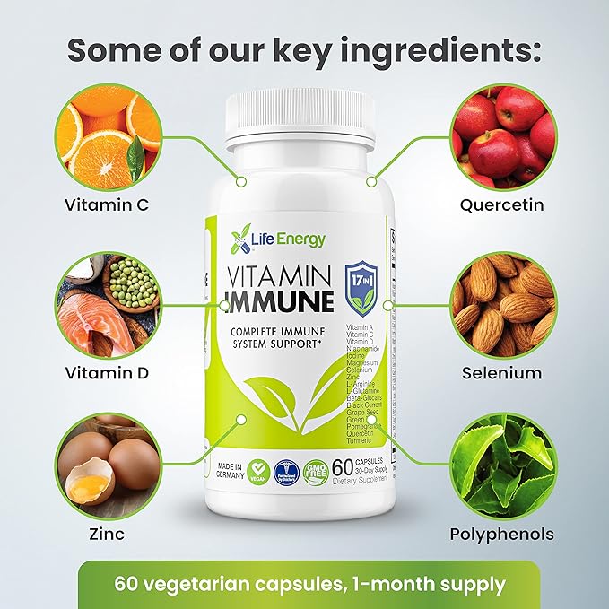17 in 1 Complete Immune Support Supplement | Immune Boost with Vitamin C, Vitamin D, Vitamin A, Zinc, Quercetin, Turmeric, Green Tea, Selenium | Daily Immunity Support Supplement for Adults - 60 Count