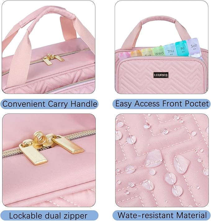 - Durable & Safety: Water resistant,durable fabric and well-padded design to keep full bag's shape and provide great protection. Sturdy stitching and heavy duty material and it can stand up many items. Equipped with a double zipper which can be locked, you can choose the lock you like to lock it, ensuring your medication is safe.