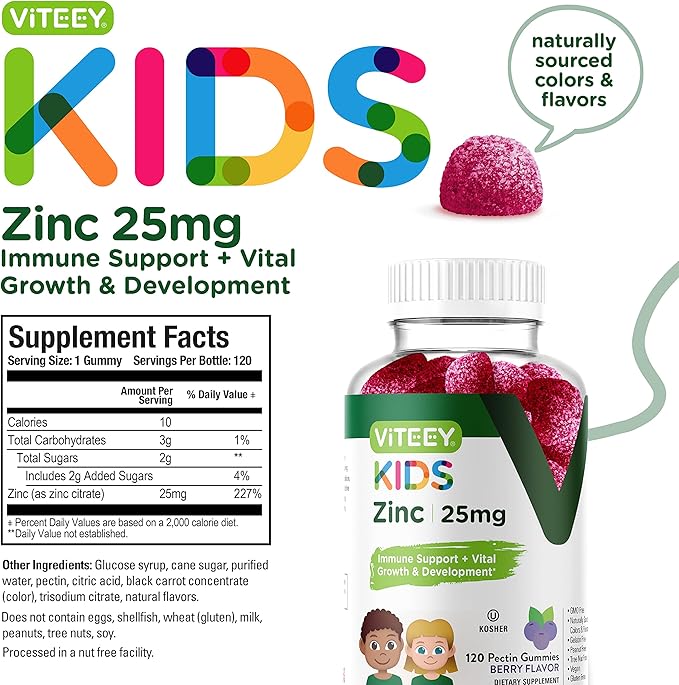 - IMMUNE HEALTH BOOSTER - Our Zinc kids gummies deliver the perfect combination that can help to aid in boosting your immune system, overall health, and well-being. Viteey's zinc gummies for kids ingredients are perfectly formulated and combined for kids and teens. Easy & convenient to take at home or on the go.