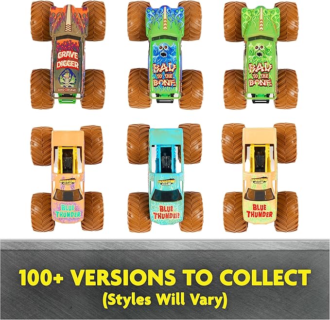 - WASH TO REVEAL: Dunk the Monster Jam trucks in water to wash the dirt paint, revealing the mystery graphics of your monster trucks