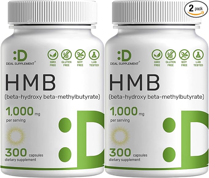 DEAL SUPPLEMENT 2 Pack of Ultra Strength HMB Supplements 1000 mg Per Serving, 600 Total Capsules | Third Party Tested | Supports Muscle Growth, Retention & Lean Muscle Mass | Fast Workout Recovery
