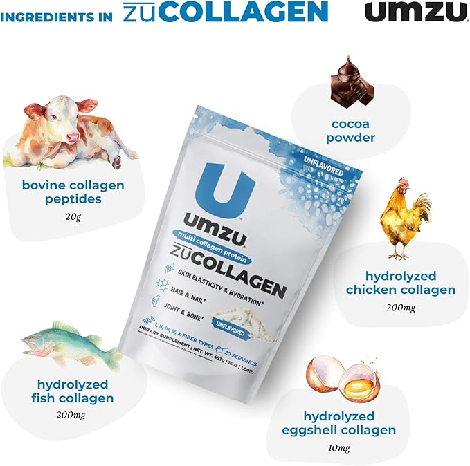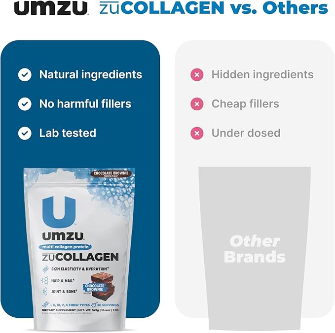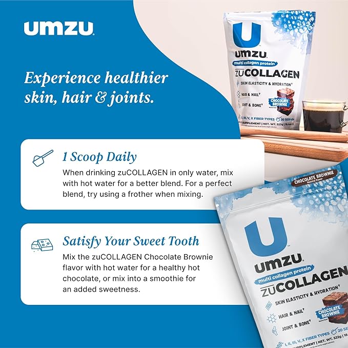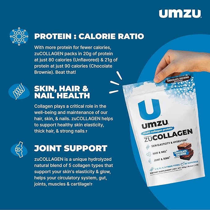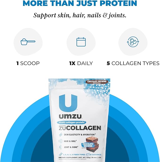 UMZU ZuCollagen Hydrolyzed Protein Powder | 5 Collagen Peptide Types for Healthy Hair, Skin, Nails, Joints & Gut | Low Calorie, High Protein (20g Protein per Serving | Chocolate)