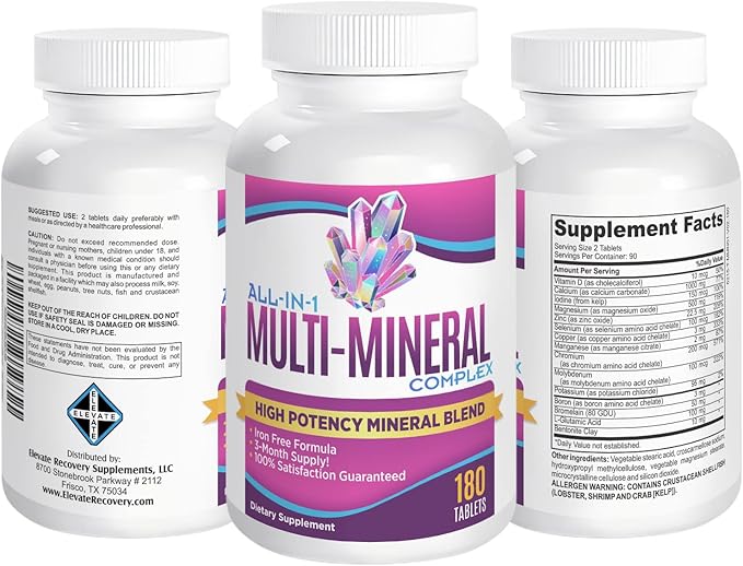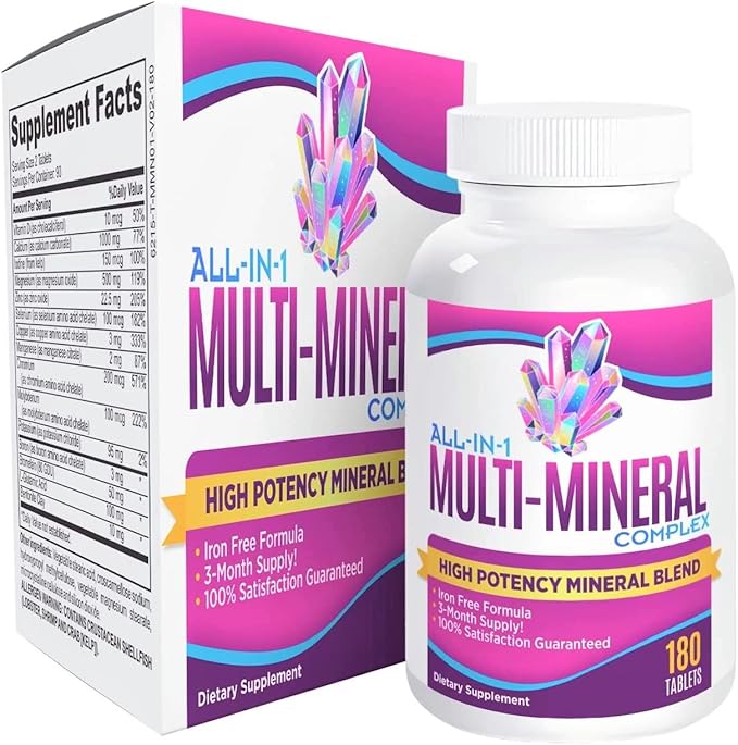 3-Month Multimineral Supplement Iron Free (All-in-1 Formula) Multi Mineral Complex - Trace Minerals - Mineral Supplements - High Potency Multiminerals - 180 Tablets