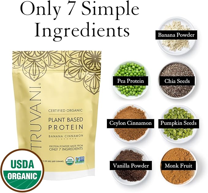 - Clean Formula, Free of Additives & Fillers: Experience pure nutrition with Truvani plant-based protein powder, free from artificial sweeteners, useless additives, and weird fillers. Our formula excludes soy, wheat, dairy, gluten, and stevia, ensuring a clean and wholesome blend. Enjoy the sweetness of organic monk fruit without added sugars.