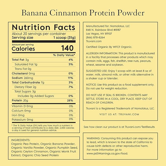 Truvani Vegan Pea Protein Powder | Banana Cinnamon | 20g Organic Plant Based Protein | 20 Servings | Keto | Gluten & Dairy Free | Low Carb | No Added Sugar