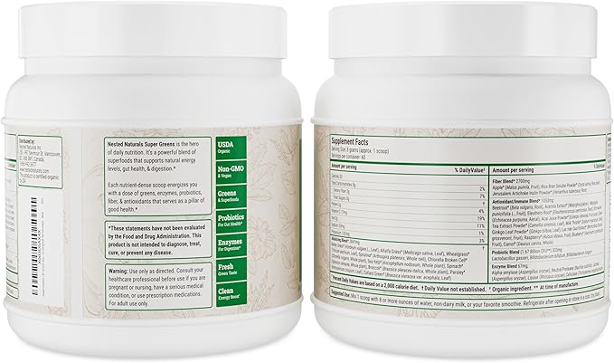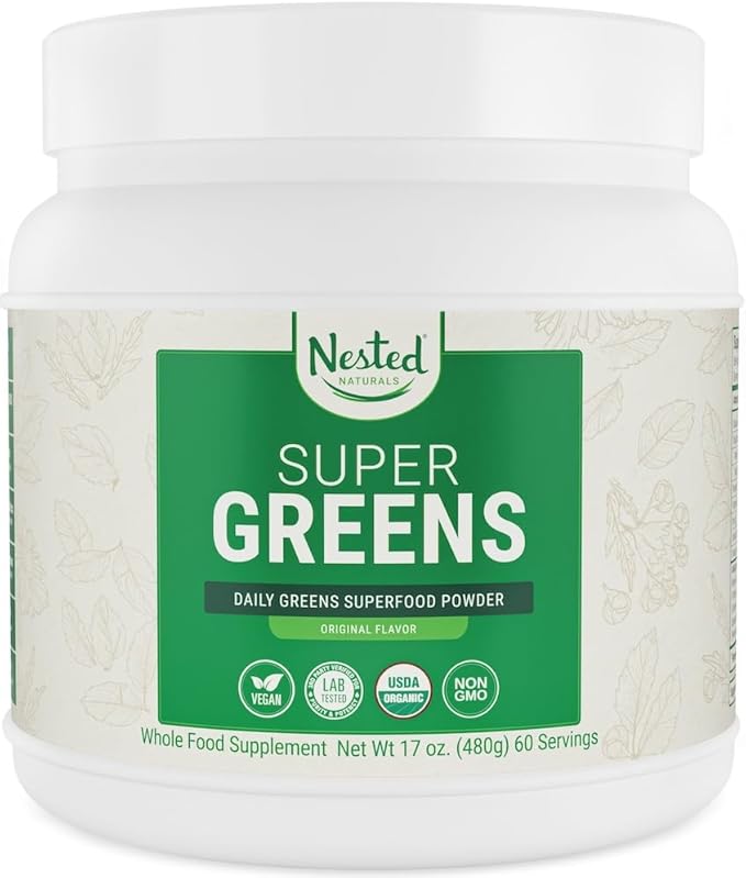 - Certified USDA Organic Greens Powder: Nested Naturals green superfood powder formula is non-GMO, vegan, and certified as organic by the USDA. Not only that, our Super Greens powder is third-party tested to ensure you’re getting only the highest purity and potency of ingredients.