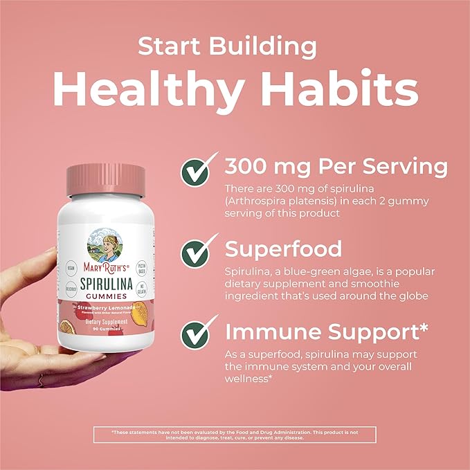 MaryRuth Organics Spirulina Gummies Made with Organic Spirulina | Superfood Gummies for Ages 14+ | Vegan | Non-GMO | 90 Count