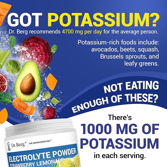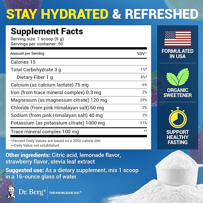 Dr. Berg Zero Sugar Hydration Keto Electrolyte Powder - Enhanced w/ 1000 mg of Potassium & Real Pink Himalayan Salt (NOT Table Salt) - Strawberry & Lemonade Hydration Drink Supplement - 50 Servings