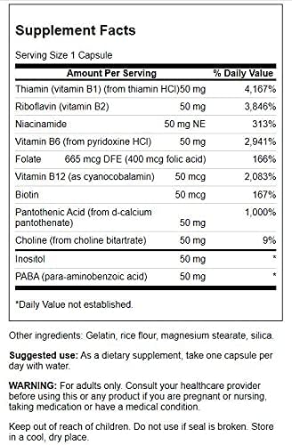 - Complete B-complex: Swanson B-50 B-Complex offers a comprehensive blend of B vitamins, including B1, B2, B3, B5, B6, B7, B9, and B12, to support overall well-being
