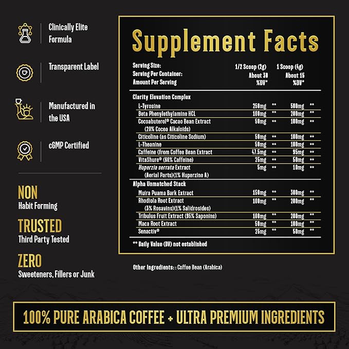 Alpha Grind โ Instant Maca Coffee for Men + Natural Energy + Brain Nootropic for Ageless Clarity, Focus | Lean Muscle Building Growth & Size, 30SV