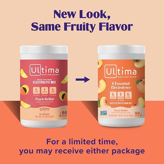 Ultima Replenisher Mocktini Electrolyte Drink Mix – Peach Bellini, 90 Servings – Hydration Powder with 6 Key Electrolytes & Trace Minerals – Keto Friendly, Non- GMO & Sugar-Free Electrolyte Powder
