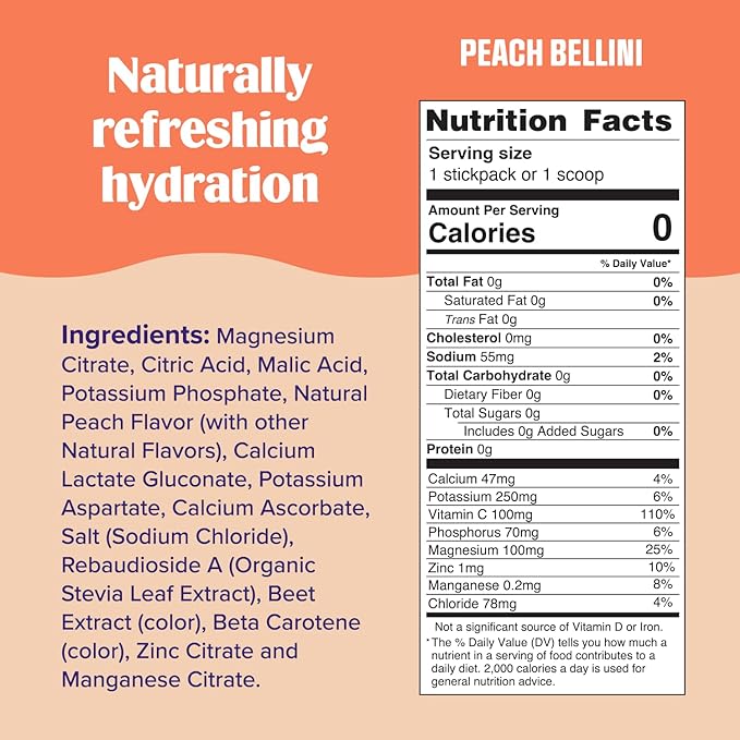 - Naturally delicious: Electrolyte drink mix made with 6 key electrolytes - magnesium, calcium, potassium, chloride, phosphorus and sodium, as well as vitamin C and zinc; naturally sweetened with organic stevia leaf and infused with real fruit flavors