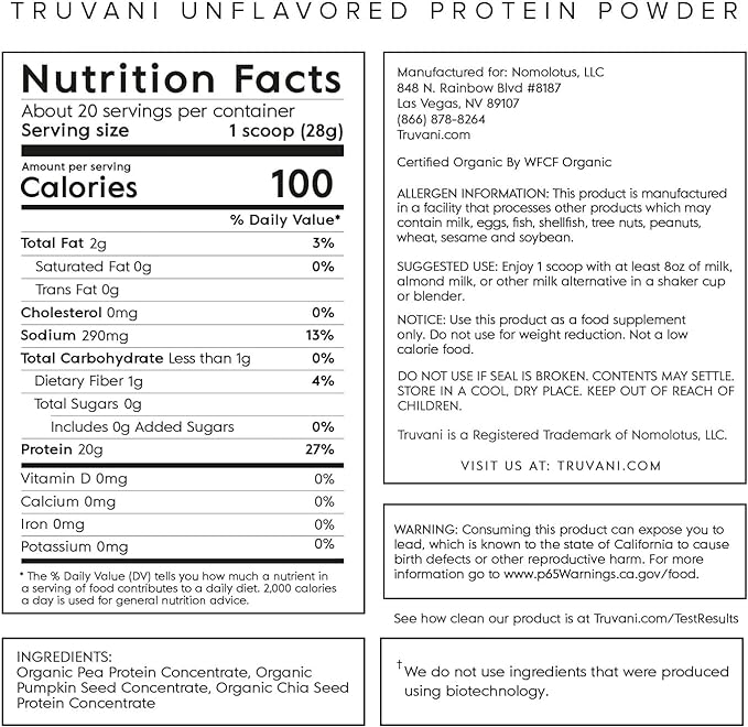 - Clean Formula, Free of Additives & Fillers: Experience pure nutrition with Truvani plant-based protein powder, free from artificial sweeteners, useless additives, and weird fillers. Our formula excludes soy, wheat, dairy, gluten, and stevia, ensuring a clean and wholesome blend. Enjoy the sweetness of organic monk fruit without added sugars.