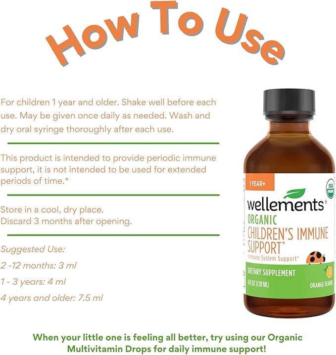 - EASY TO USE – Simply dispense towards the inner cheek using the dispenser provided. Our organic immune syrup has a slightly sweet orange flavor that little ones love! For toddlers and kids 1 year and older.