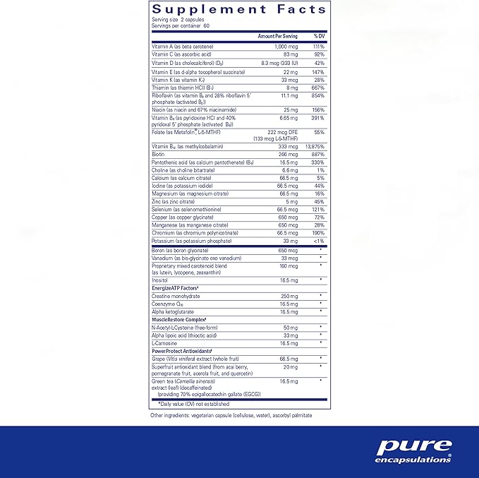 Pure Encapsulations Athletic Nutrients | Multivitamin/Mineral Complex for Exercise Performance and Training* | 120 Capsules