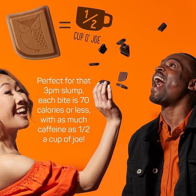 - Natural Energy Boost - With 50mg of caffeine and only 70 calories, our bites help you tackle your day or beat the afternoon slump. Just one delicious bite equals half a cup of coffee with no artificial colors or flavors (or the mess or taste of coffee!).