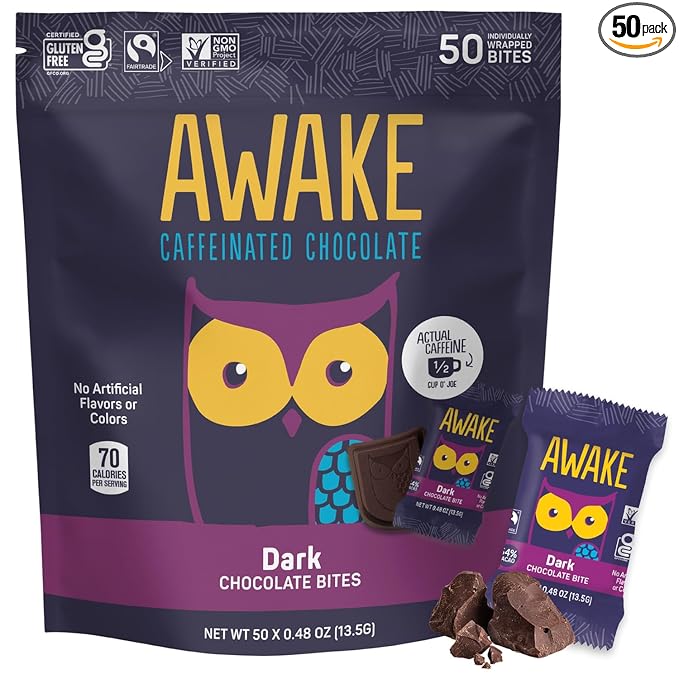 - Contains 50 - 0.48 Ounce Awake Caffeinated Chocolate Bites