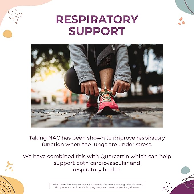 - Free radical neutralizer: Potent combination of NAC to boost production of the body’s “master antioxidant”, plus an added 600 mg of the flavonoid Quercetin to fight cell oxidation and support a healthy immune system