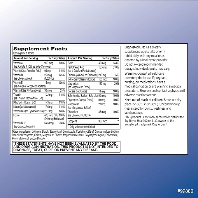 - One Daily Men's Tablets are suggested as a dietery supplement in support of Heart Health, Healthy Blood Pressure, Immune System Health, Muscle Function, and Energy Production.