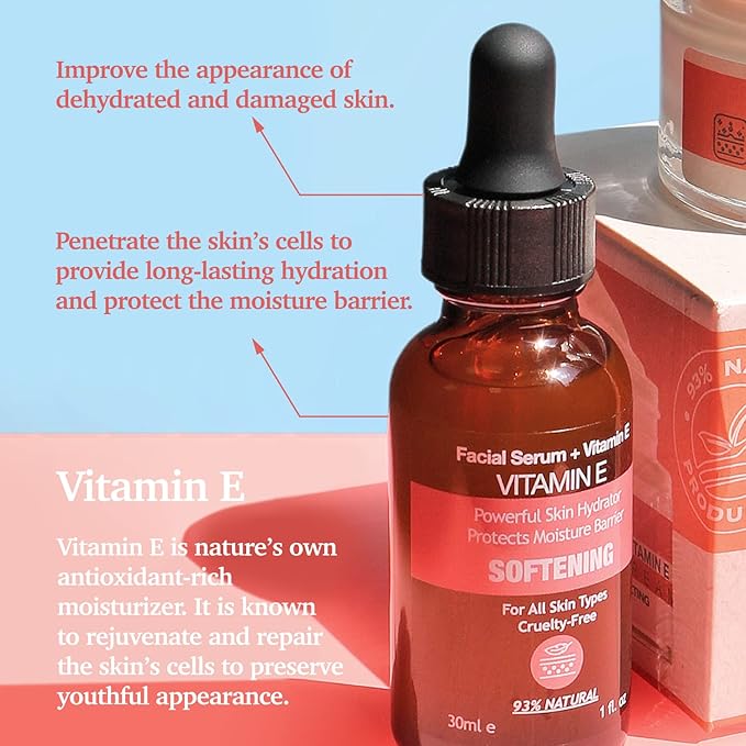 - [SOFTENING & HYDRATING] This Vitamin E serum is packed with nutrition that improves the appearance of dehydrated and damaged skin. The effective yet gentle ingredients penetrate the skin’s cells to provide long-lasting hydration and protect the moisture barrier.