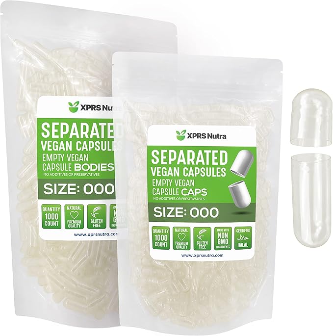 XPRS Nutra Vegan Size 000 Separated Capsules- 1000 Count Premium Empty Capsules Separated in Bags - Clear Empty Capsules - Separated Empty 000 Capsules - Pill Capsules Empty for DIY Supplement Filling