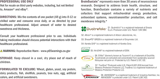 - BrainSustain represents more than 30 years of neuroscience research. It contains a variety of nutrients and cofactors that support mitochondrial energy production, antioxidant systems, neurotransmitter production, and cell membrane integrity.*