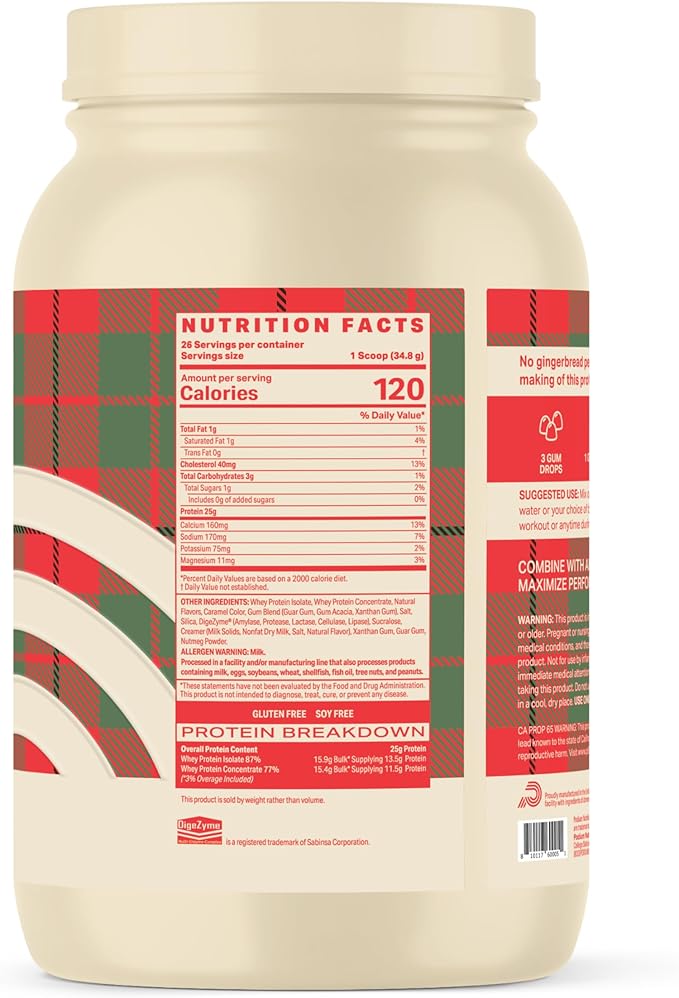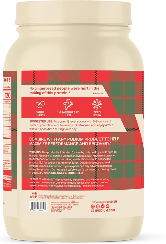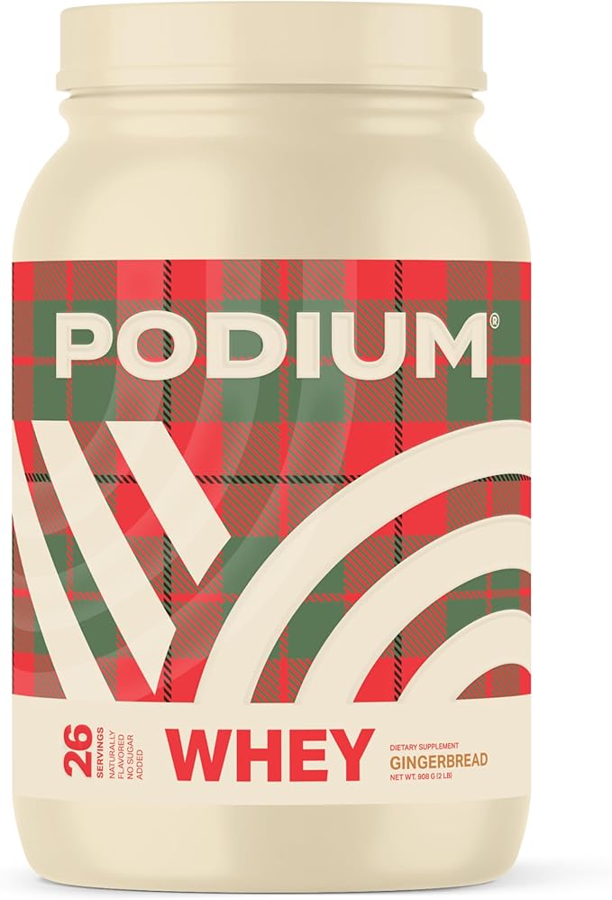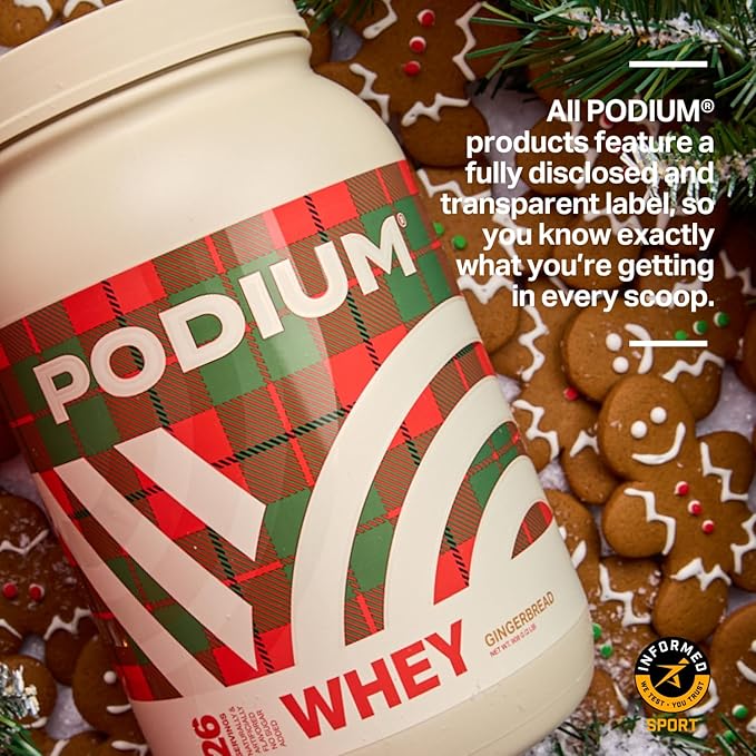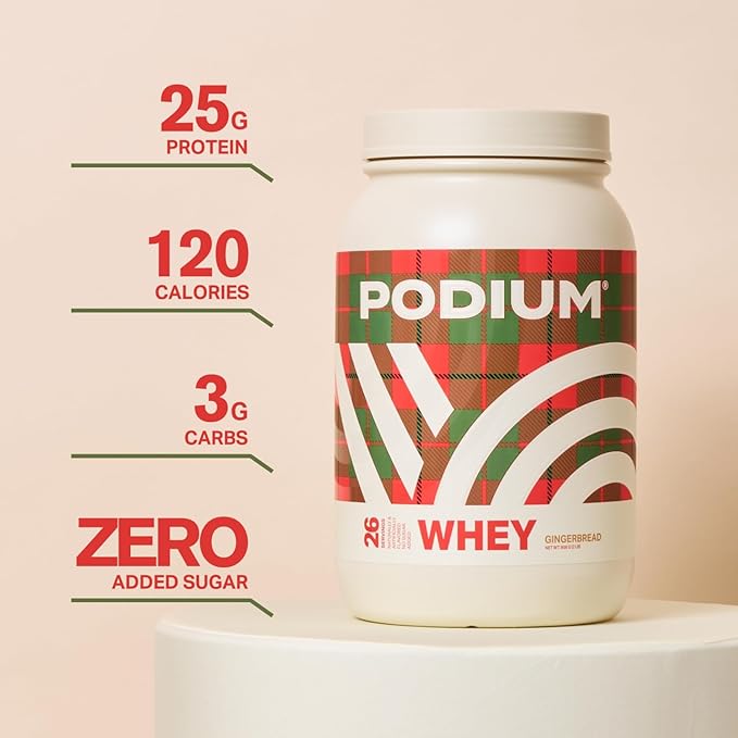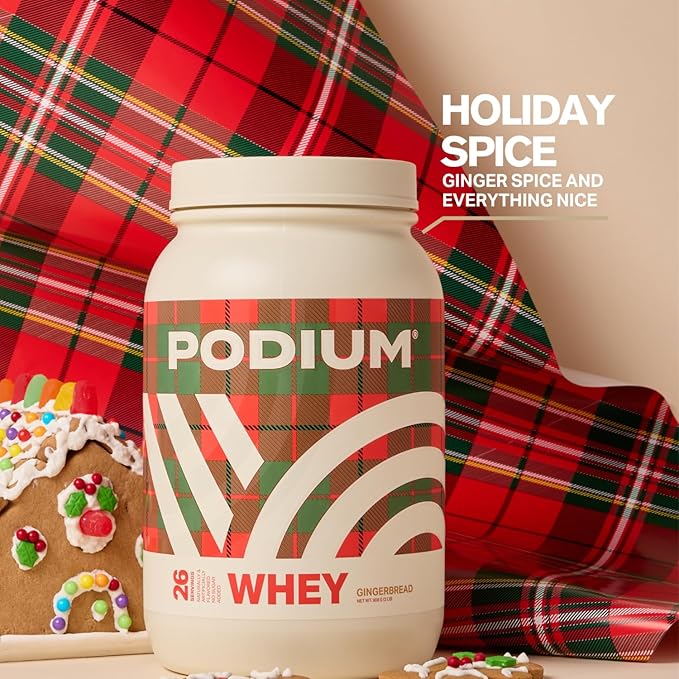 Podium Nutrition Whey Protein Powder, Gingerbread, 25g Protein Per Serving with Digestive Enzymes, Whey Protein Isolate & Concentrate, Gluten Free, Low Carb, Low Sugar & Soy Free, 27 Servings