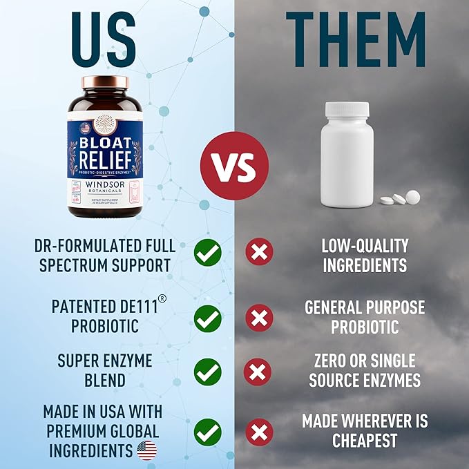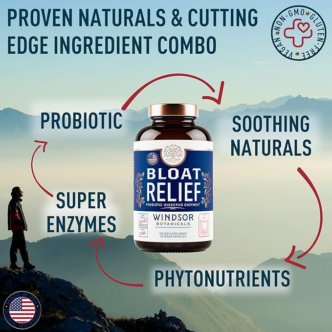 - MADE WITH LOVE IN THE USA with premium, naturally-derived, vegan, gluten-free and no GMO globally selected de bloat IBS probiotics multi enzyme ingredients. Made in GMP certified facilities in the US.