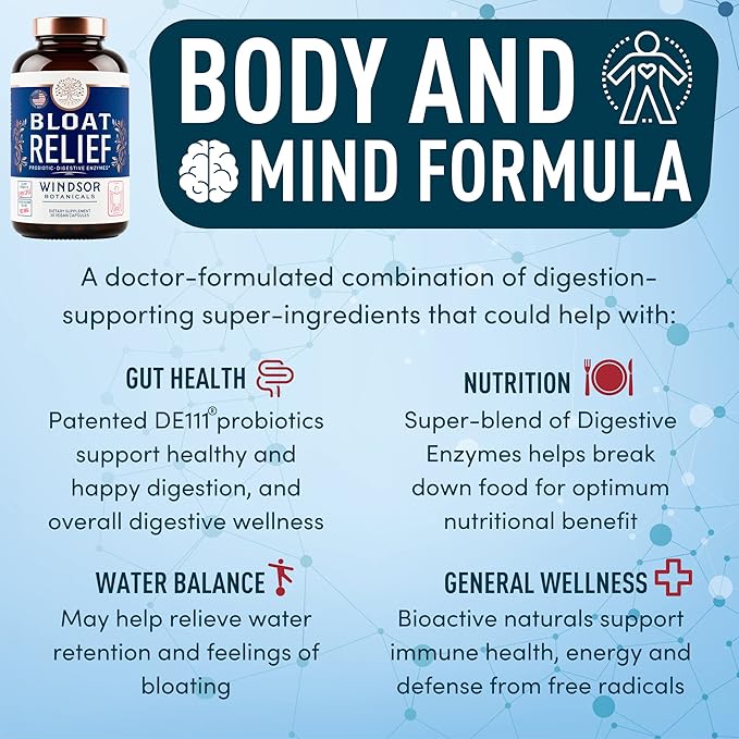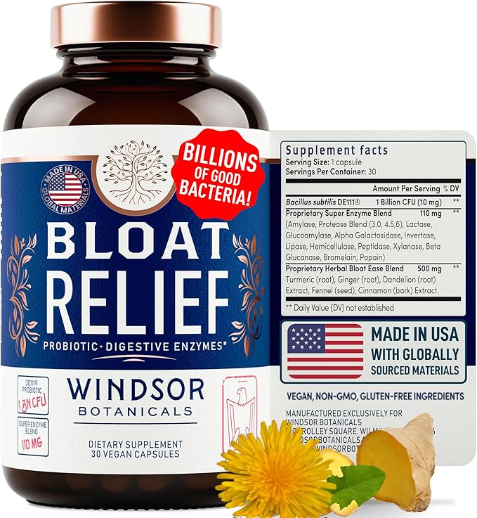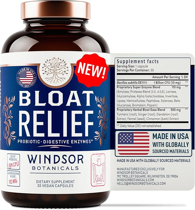 - BLOATED BELLY RELIEF. Doctor-formulated lipase, amylase, bromelain, digestive enzymes support the efficient breaking down food and drink. Supports reducing gas and getting the best from nutrients.
