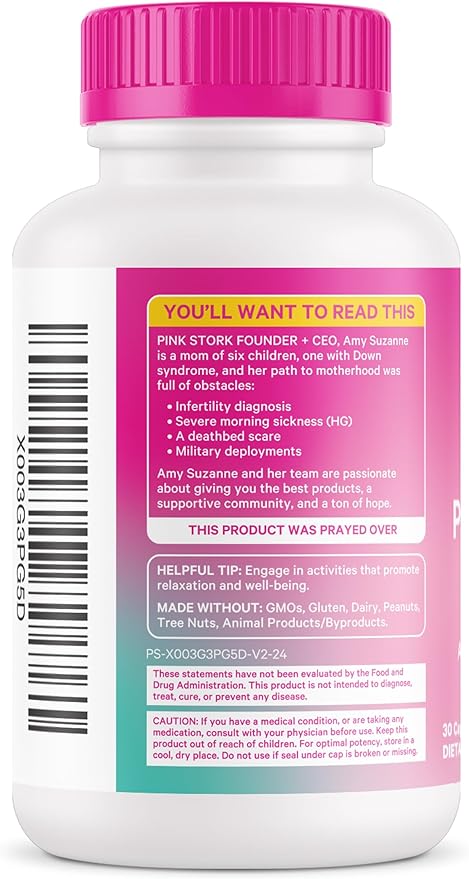 - Pink Stork Postpartum Probiotics do not contain gluten, wheat, dairy, soy, or GMOs. Third-party tested and breastfeeding-friendly for nursing and pumping moms. Each bottle contains a heart shaped ScentCert - so your supplements taste and smell as great as they make you feel!