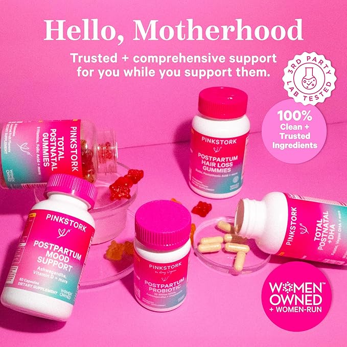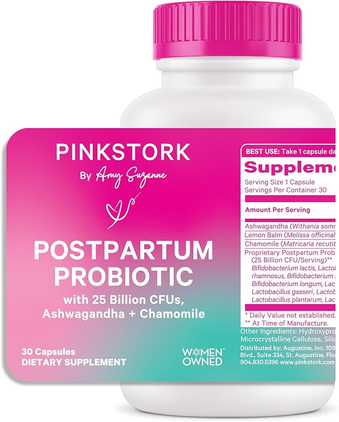 - There are so many prenatal vitamins and supplements - what about postpartum vitamins? Trust Pink Stork Postnatal Probiotics for postpartum recovery with our new blend of 11 probiotic strains and three herbal extracts. One capsule provides 25 billion CFU/serving of eleven probiotics, including Bifidobacterium strains and Lactobacillus strains - take one daily as part of your postnatal ritual with our Total Postnatal Vitamins for women.