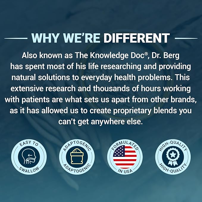 - ๐ช๐๐ฌ ๐ช๐โ๐ฅ๐ ๐๐๐๐๐๐ฅ๐๐ก๐ง - Also known as The Knowledge Doc, Dr. Berg has spent most of his life researching and providing natural solutions to everyday health problems. This extensive research and thousands of hours working with patients are what sets us apart from other brands, as it has allowed us to create proprietary blends you canโt get anywhere else.