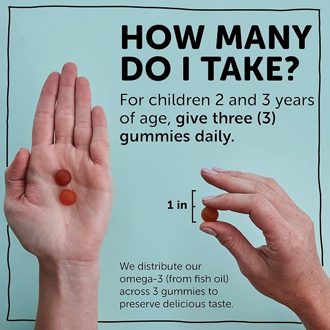 - DELICIOUS TASTE & KID-APPROVED: Grape, Orange, and Blueberry Flavors with Other Natural Flavors. Toddlers 2-3 years of age, take three gummies daily under adult supervision. May be taken with or without food. Chew each gummy thoroughly