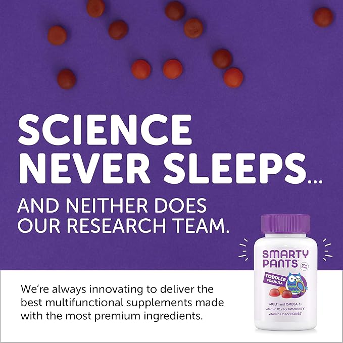 - PREMIUM, SCIENCE-BACKED TODDLER GUMMIES: SmartyPants Toddler Multi & Omegas contains more nutrients than the leading kids multi brand’s top-selling item and is formulated to help fill nutrient gaps. Based on $ Sales, IRI InfoScan, & MULO, 05/2022-05/2023