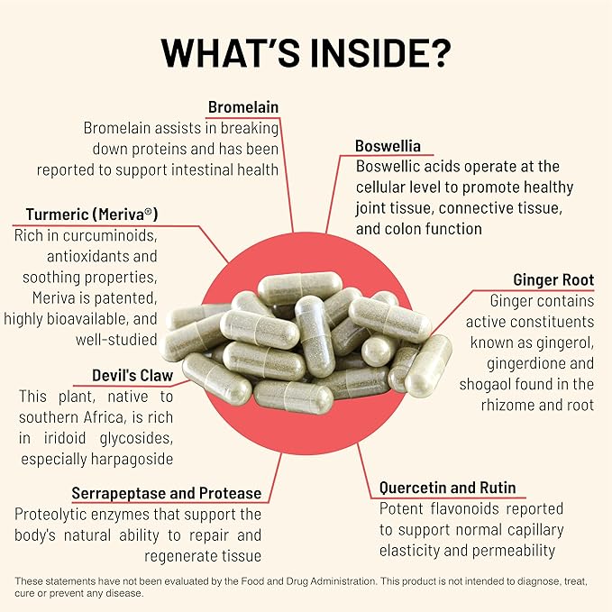 - POTENT INGREDIENTS FOR CELLULAR HEALTH: Derived from pineapple, Bromelain helps break down proteins and supports intestinal health. It has been reported to reduce inflammation associated with exercise over-exertion. Meriva uses phytosome technology to enhance the absorption of curcumin, the active compound in turmeric. This potent ingredient may contribute to healthy joints, connective tissue, and colon function by inhibiting enzymes and lipids that cause discomfort.
