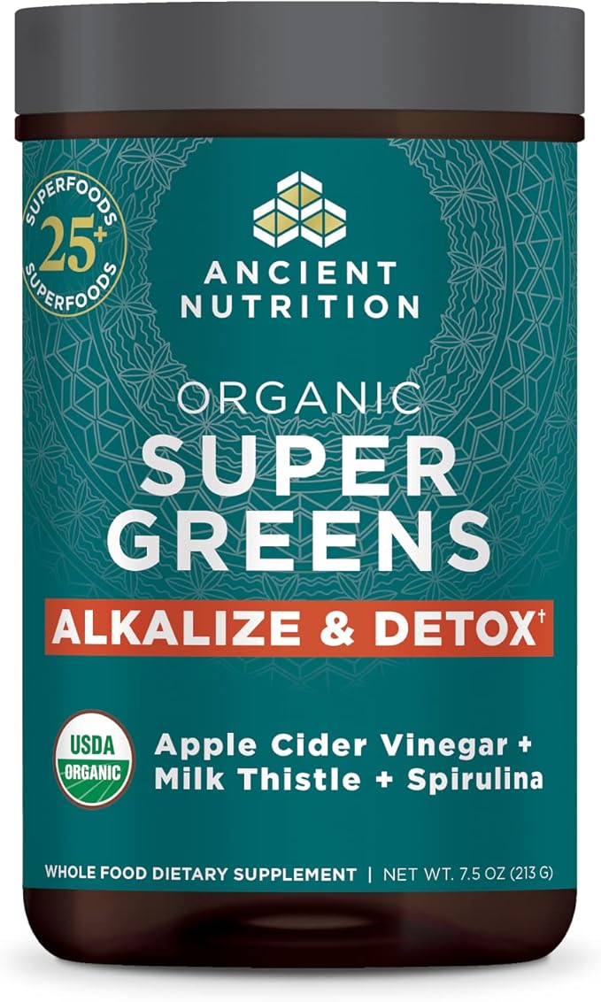 Supergreens Alkalize & Detox Powder by Ancient Nutrition, Organic Superfood Powder Made from Real Fruits, Vegetables and Herbs, for Digestive and Energy Support, 25 Servings, 7.5oz