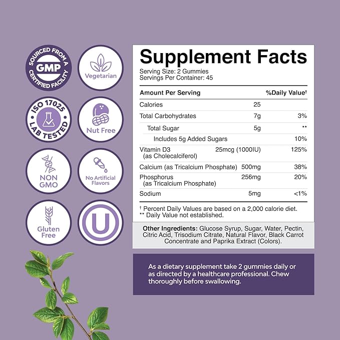 - High Potency Calcium - Experience the power of our tasty gummy vitamins that are packed full of nutrients and get your daily nourishment for bone health with our calcium supplement for women and men