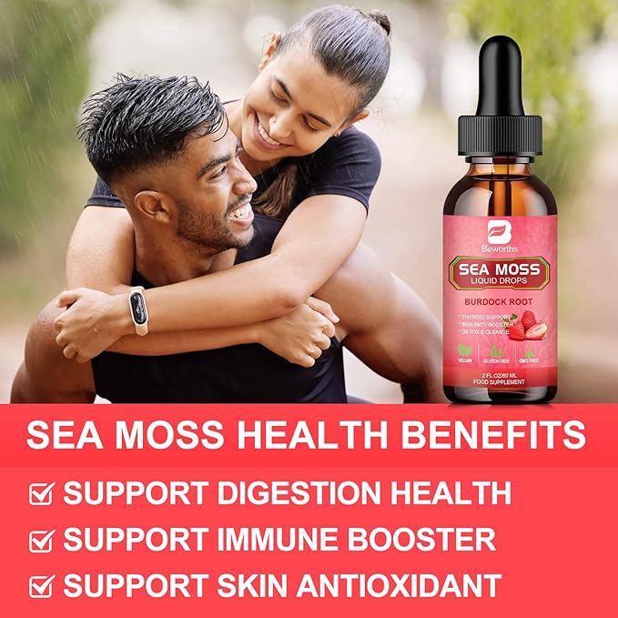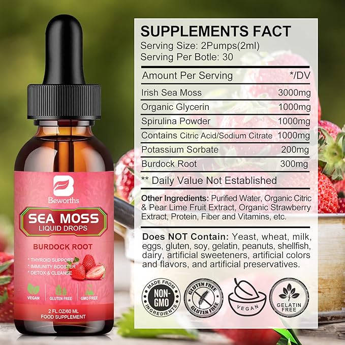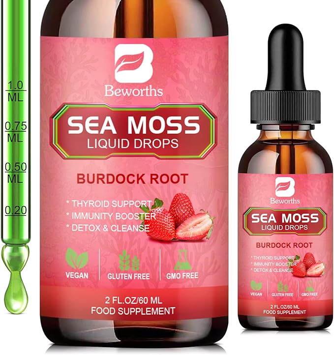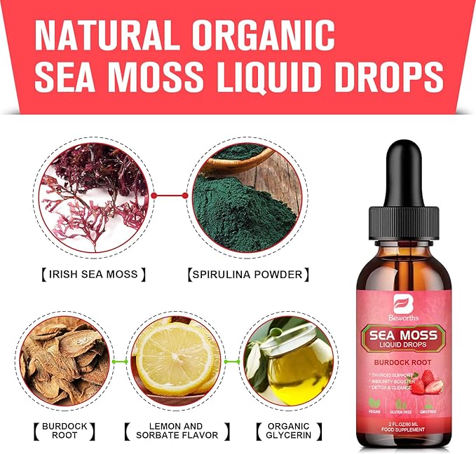 - 【Impressive Benefits】: Ultra-Strength organic sea moss and burdock root, immunity booster, support skin, and joint health. Irish sea moss is rich in a vital source of all the essential vitamins detox cleanse, improves your life, aids in muscle building, promotes health skin, and boosts your immunity. This sea moss drops support is gluten-free, non-GMO, and vegan.