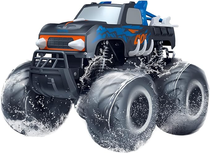 • WATERPROOF MONSTER TRUCK TOYS: Whether indoors or outdoors, the truck can easily conquer various terrains: like beach, swimming pool, land, stone road, beaches, and grasslands even in the water... will offer an exciting and versatile experience for kids. Nice presents for kids ages 6 to 12./// The Remote is not waterproof !!!