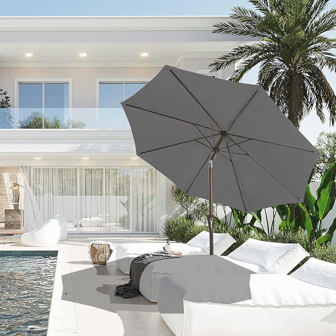 JEAREY 9FT Outdoor Patio Umbrella Outdoor Table Umbrella with Push Button Tilt and Crank, Market Umbrella 8 Sturdy Ribs UV Protection Waterproof for Garden, Deck, Backyard, Pool (Dark Gray)
