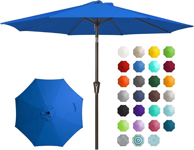 JEAREY 9FT Outdoor Patio Umbrella Outdoor Table Umbrella with Push Button Tilt and Crank, Market Umbrella 8 Sturdy Ribs UV Protection Waterproof for Garden, Deck, Backyard, Pool (Royal Blue)