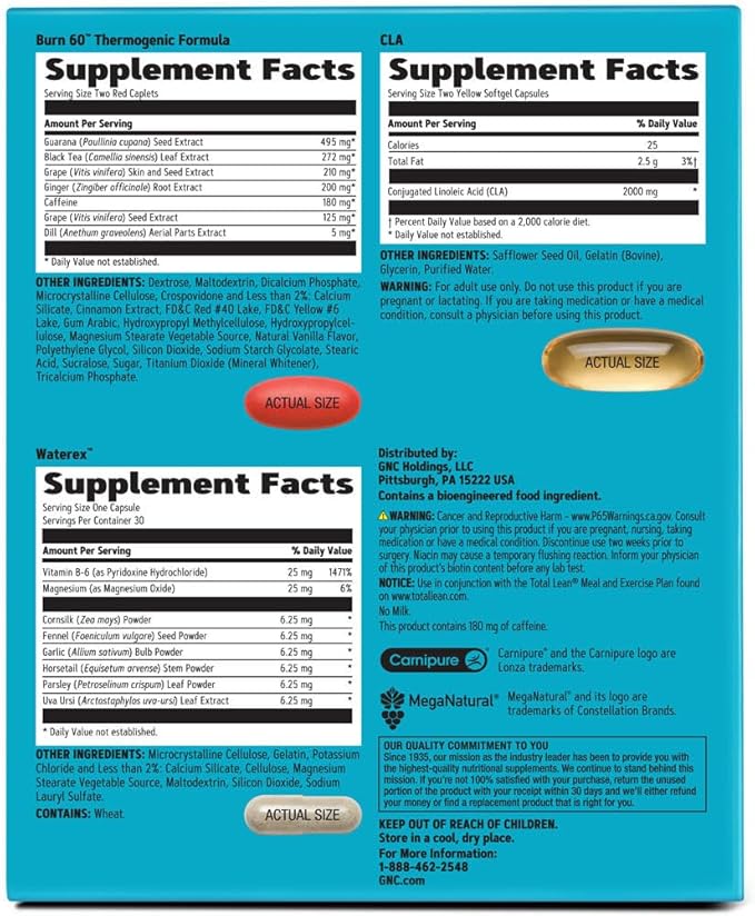 - Increase Your Calorie Burn With GNC Total Lean Burn 60: If you’re eating healthier and exercising, Burn 60 can be an energizing push towards the results you’re working towards. Burn 60’s benefits don’t stop when you’re done working out—it also increases calorie burn after workouts when combined with a diet and exercise plan