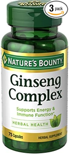 Nature's Bounty Ginseng Complex Herbal Health Capsules 75 ea (Pack of 3)