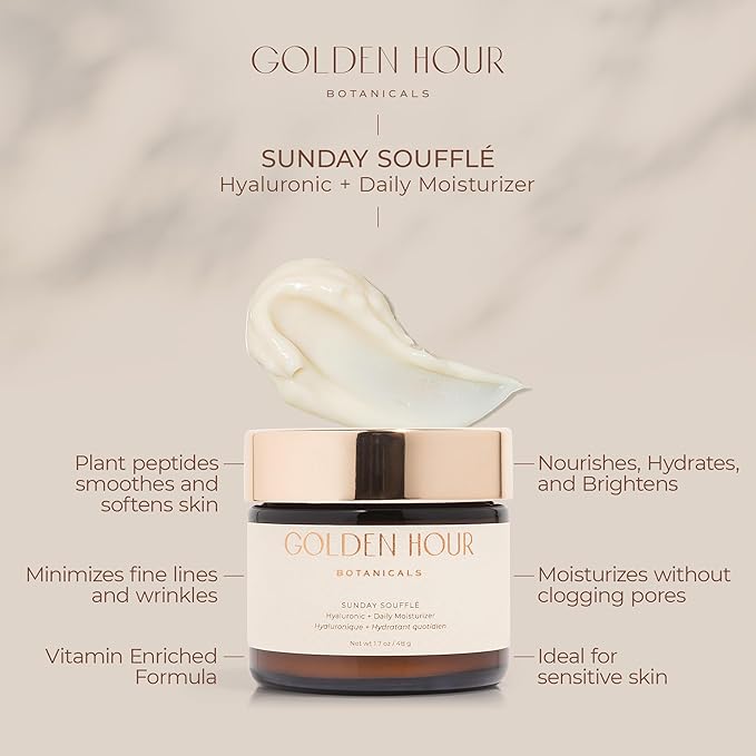 Organic Skin Care Products Made in USA, Hydrating Daily Facial Moisturizer + Face Lotion Cream with Hyaluronic Acid + Vitamin E, Cruelty Free, 1.7 fl oz/48g, SunDay Souffle